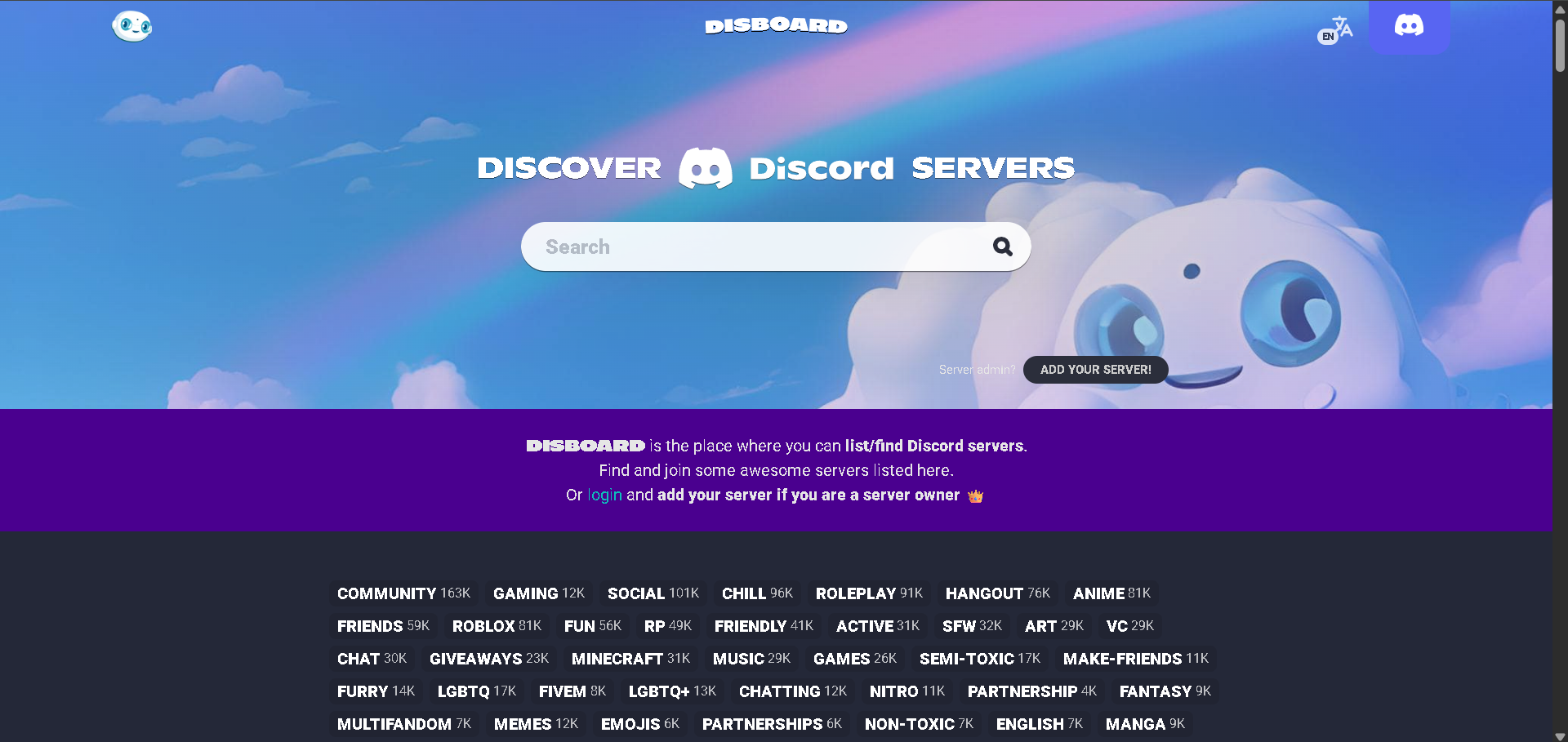 Disboard is a major player offering a massive selection of servers across interests like anime, education, and technology.