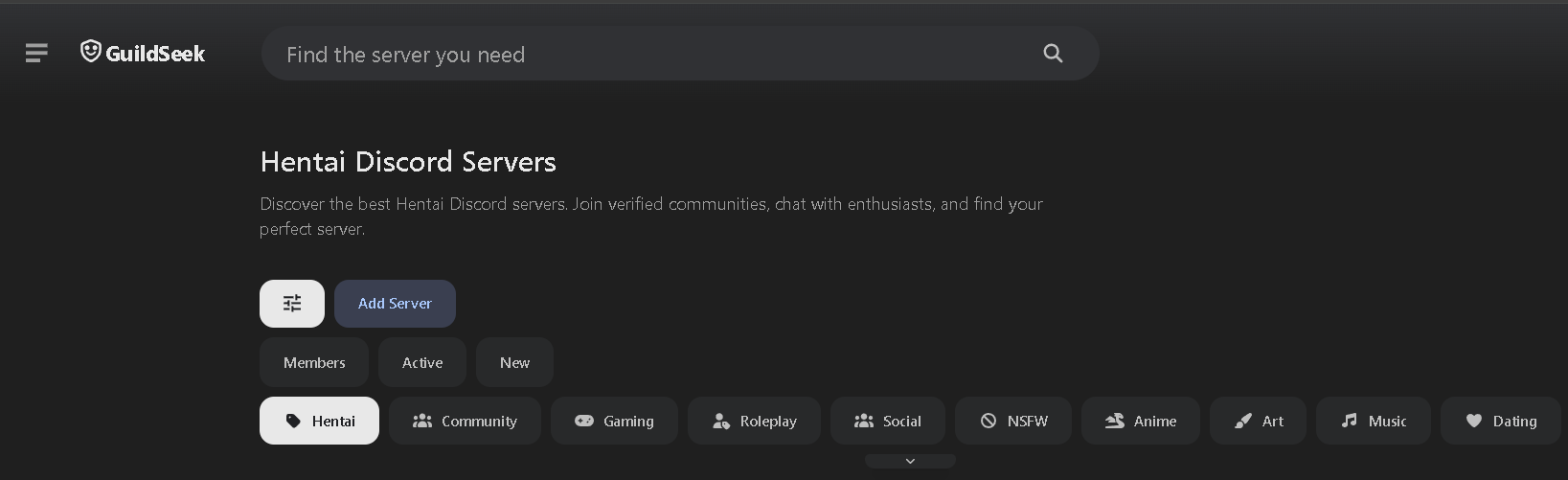 Discord’s native search is limited for NSFW content. To find new communities, use directories like GuildSeek or similar aggregators. Always filter by your preferred tags (like "NSFW," "Hentai," or "RP") and check the "active member" count before joining to make sure the server is actually alive.